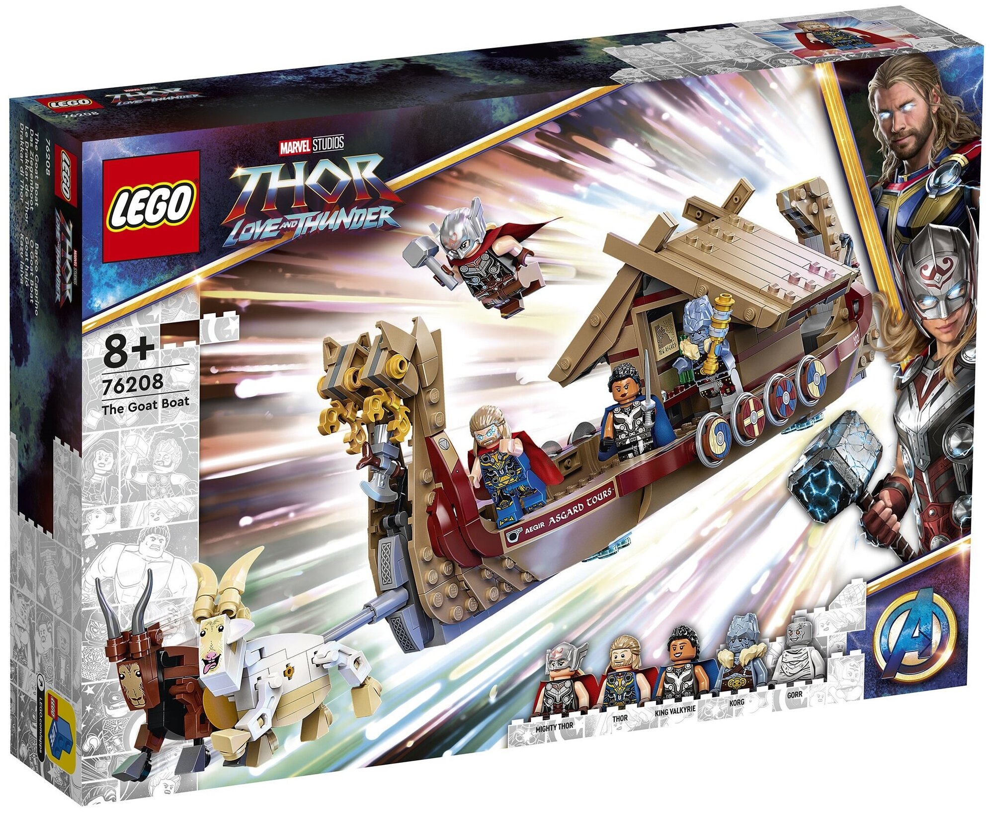 Лучшие цены. Набор LEGO Marvel Goat Boat (76208) — идеальный подарок для детей от 8 лет и старше, которым понравится лодка викингов с популярными персонажами из фильма «Тор: Любовь и гром» от Marvel Studios. Сражайтесь на летающей лодке Тора Легендарные козлы Скрежетая зубами и Скрежетая зубами тащат по небу лодку викингов. Фигурки размещены над землей, поэтому дети могут легко толкать лодку во время игры. Магазины в вашем городе.