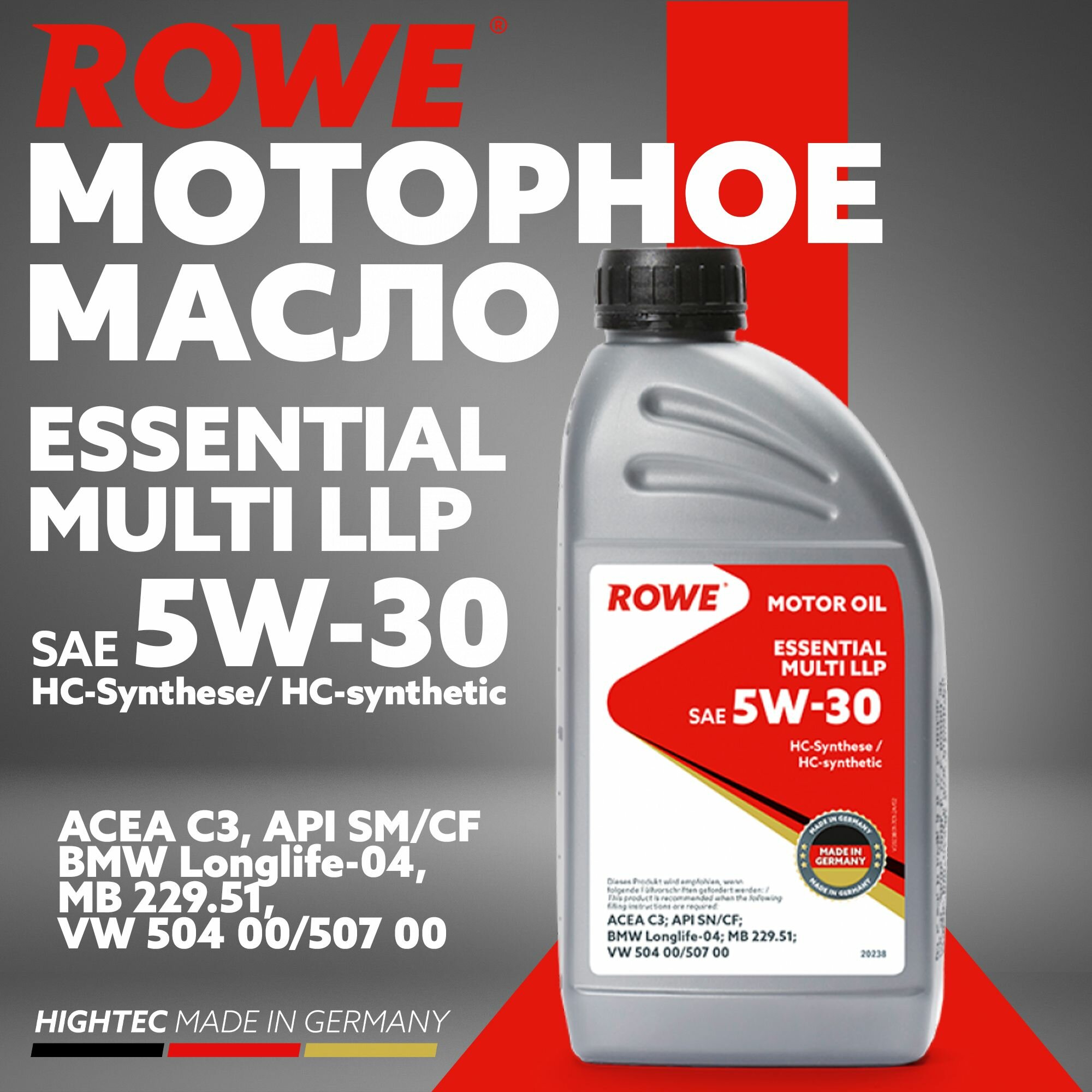 Моторное масло rowe essential multi llp sae 5w-30 (1 л) acea c3 api sm/cf vw 504 00/507 00 mb 229.51 bmw longlife04