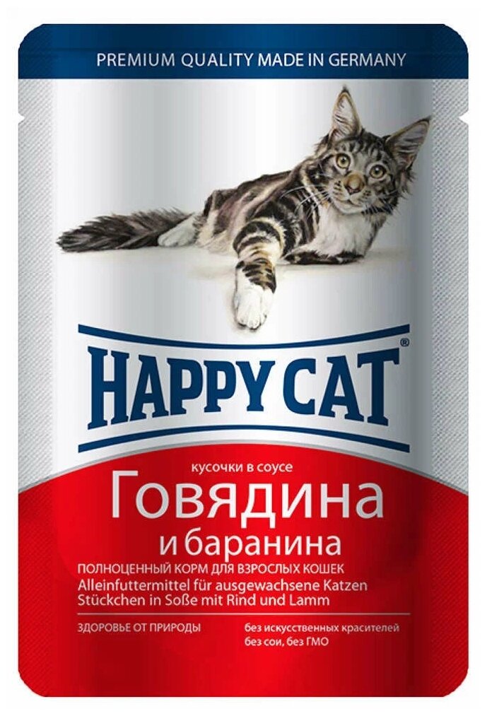 HAPPY CAT для взрослых кошек с говядиной и бараниной в соусе 7502314 (100 гр х 24 шт)