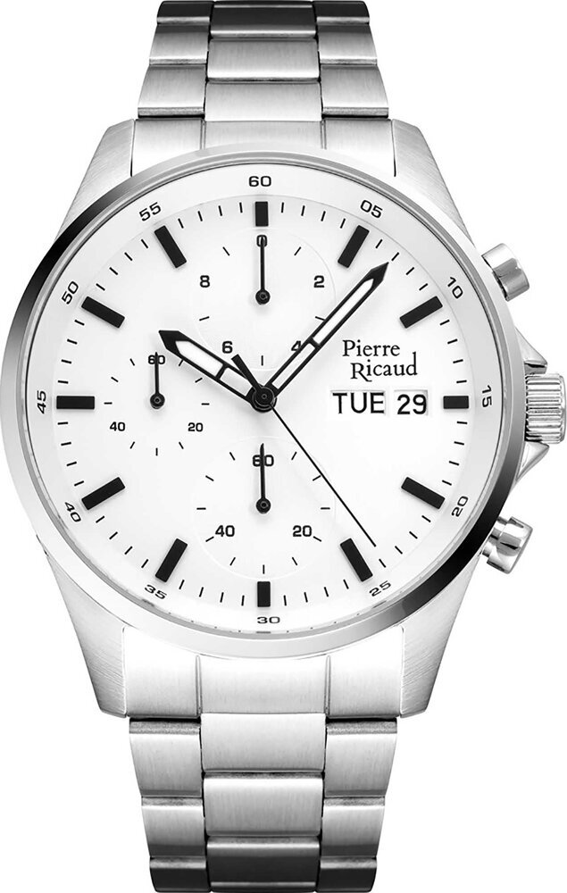 Лучшие цены. мужские кварцевые наручные часы с секундомером и календарем. Мужские кварцевые часы-хронограф в круглом корпусе на стальном браслете. Базовый стиль немецкого бренда "Пьер Рико" – это классика и лаконичность, также представлена спортивная линейка часов с яркими и контрастными элементами. Отсутствие сложных и «навороченных» деталей и технологий придают изделиям особую прелесть и шарм, делая часы практичными и универсальными. Магазины в вашем городе.