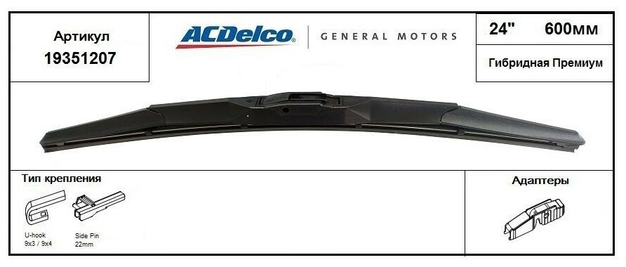 ACDELCO 19351207 Стеклоочиститель 24 (600 мм) гибрид.универсальное крепление