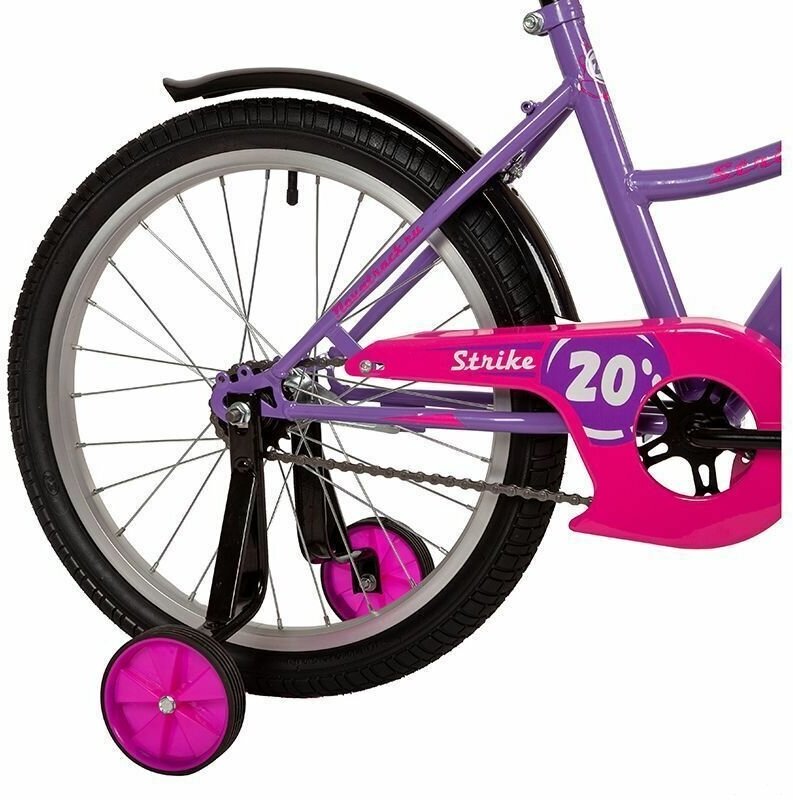 Велосипед детский 20" NOVATRACK STRIKE фиолетовый для девочек и мальчиков от 7 до 10 лет на рост 125-130 см, двухколесный городской велик со съемными боковыми колесами
