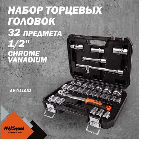 Набор инструмента "AV Steel" 32 предм. 1/2" профессион., AV-011032