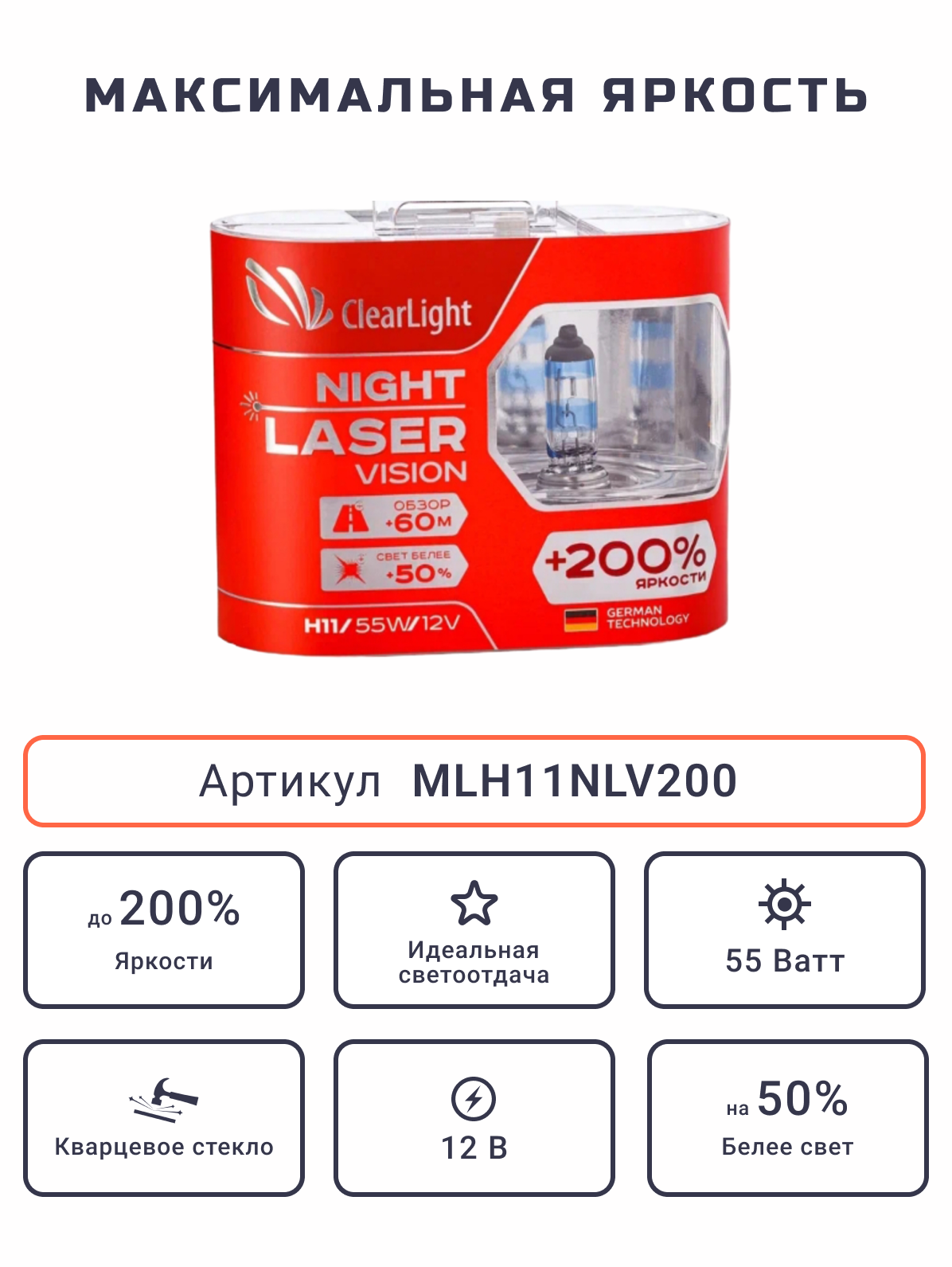 Clearlight Night Laser Vision (mlh11nlv200-2) Автомобильные лампы 2 шт(H11, 55W, 12V) .
