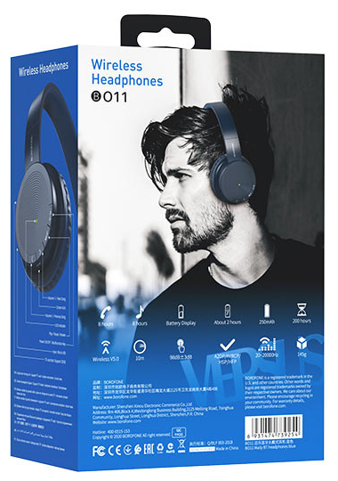 Наушники беспроводные полноразмерные Borofone B011 синий