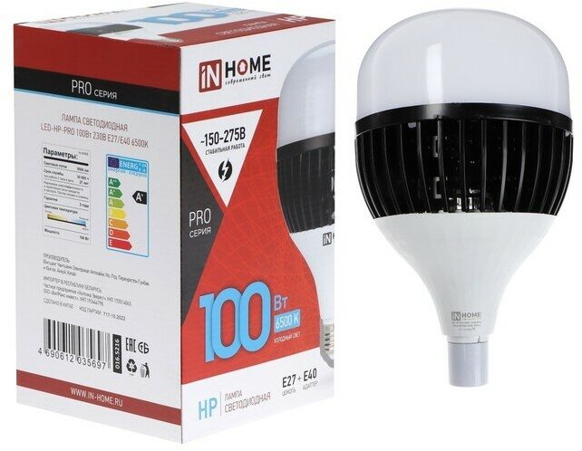 Лампа светодиодная LED-HP-PRO 100Вт 230В E27 с адаптером Е40 6500К 9500Лм IN HOME (арт. 4690612035697)