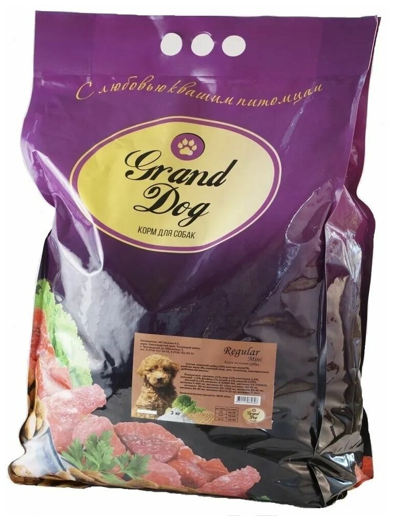 Корм для собак Корм сухой для собак Гранд Дог Grand Dog Regular Mini Рубец для малых пород (3кг)