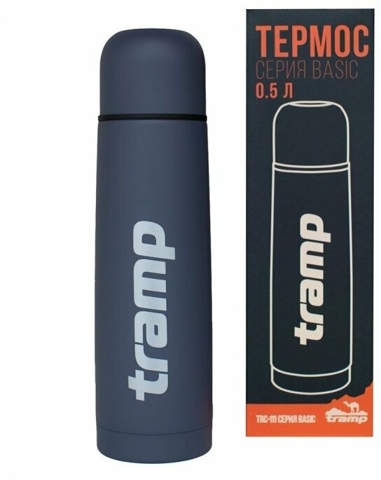 Термос Tramp "Basic 0.5 л", TRC-111, нержавеющая сталь/пластик, с пробкой и крышкой-чашкой, серый