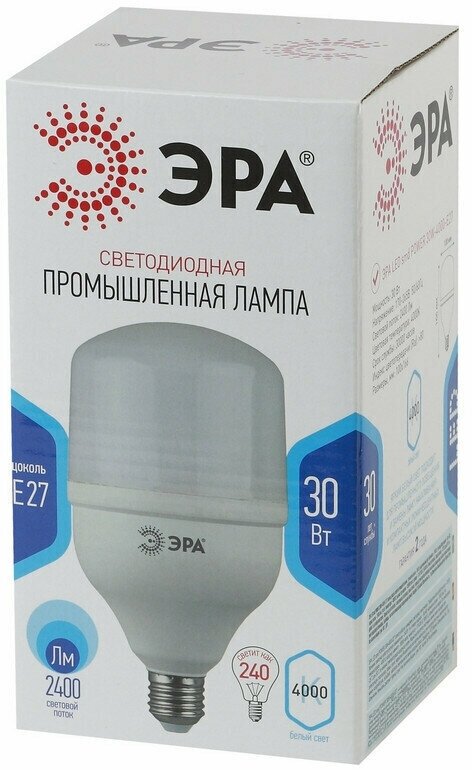 Лампочки Лампа светодиодная ЭРА 30W E27 4000k бел. LED smd POWER T100-30W-4000-E27 , 1 шт.