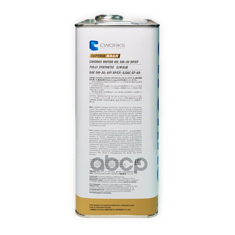 Масло моторное синтетическое CWORKS SUPERIA 5W30 API SP/CF ILSAC GF-6 1л CWORKS A13SR1001 | цена за 1 шт