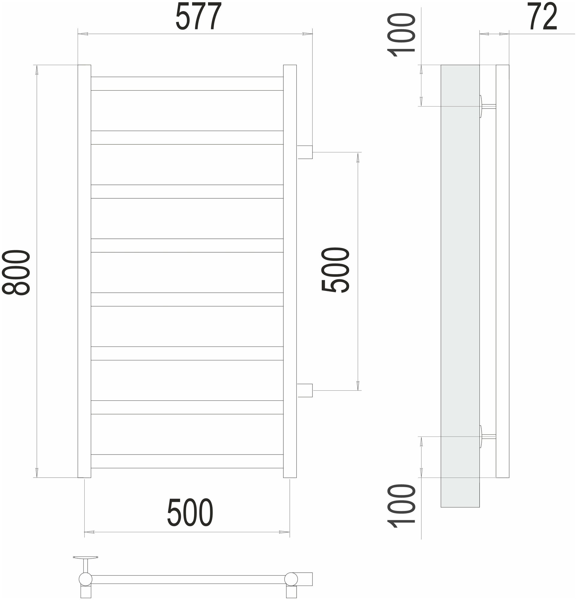Аврора с боковым подключением (577 мм / 800 мм / 500 мм)