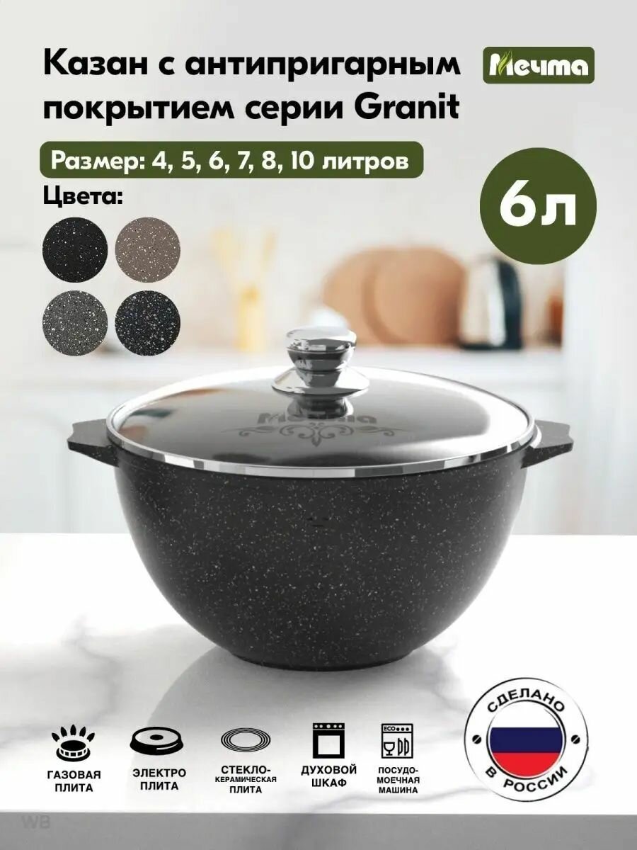 Гусятницы и казаны Казан алюм, антиприг, 6 л, Гранит black, с крыш, Мечта, 56 802