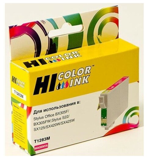 Лучшие цены. Картридж струйный Hi-Black T1283 для Epson Stylus S22/ SX125/ SX420W/ SX425W/ BX305F, пурпурный. Ресурс картриджа 140 страниц при 5% заполнении листа А4. Совместим с моделями: Epson Stylus Office BX305F, Epson Stylus Office BX305FW, Epson Stylus Office BX305FW+, Epson Stylus S22, Epson Stylus SX125, Epson Stylus SX130, Epson Stylus SX230, Epson Stylus SX235W, Epson Stylus SX420W, Epson Stylus SX425W, Epson Stylus SX430W, Epson Stylus SX435W, Epson Stylus SX438W, Epson Stylus SX440, Epson Stylus SX440W. Магазины в вашем городе.