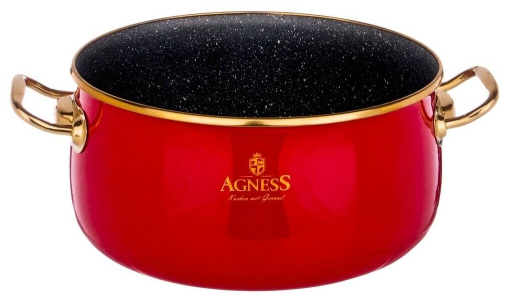 Кастрюля Кастрюля Agness эмалированная 5,3 л/22,4 см со стеклянной крышкой и антипригарным мраморным покрытием (950-213)
