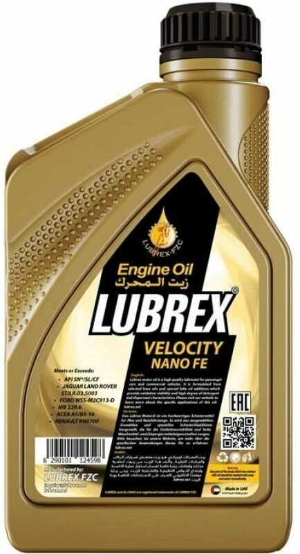 Моторные масла Масло моторное синтетическое LUBREX VELOCITY NANO FE 5W-30, 1л