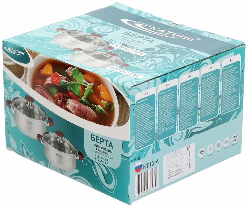Катунь КТ15-А берта, Набор кастрюль из 4-х предметов (2,0л + 3,0л)