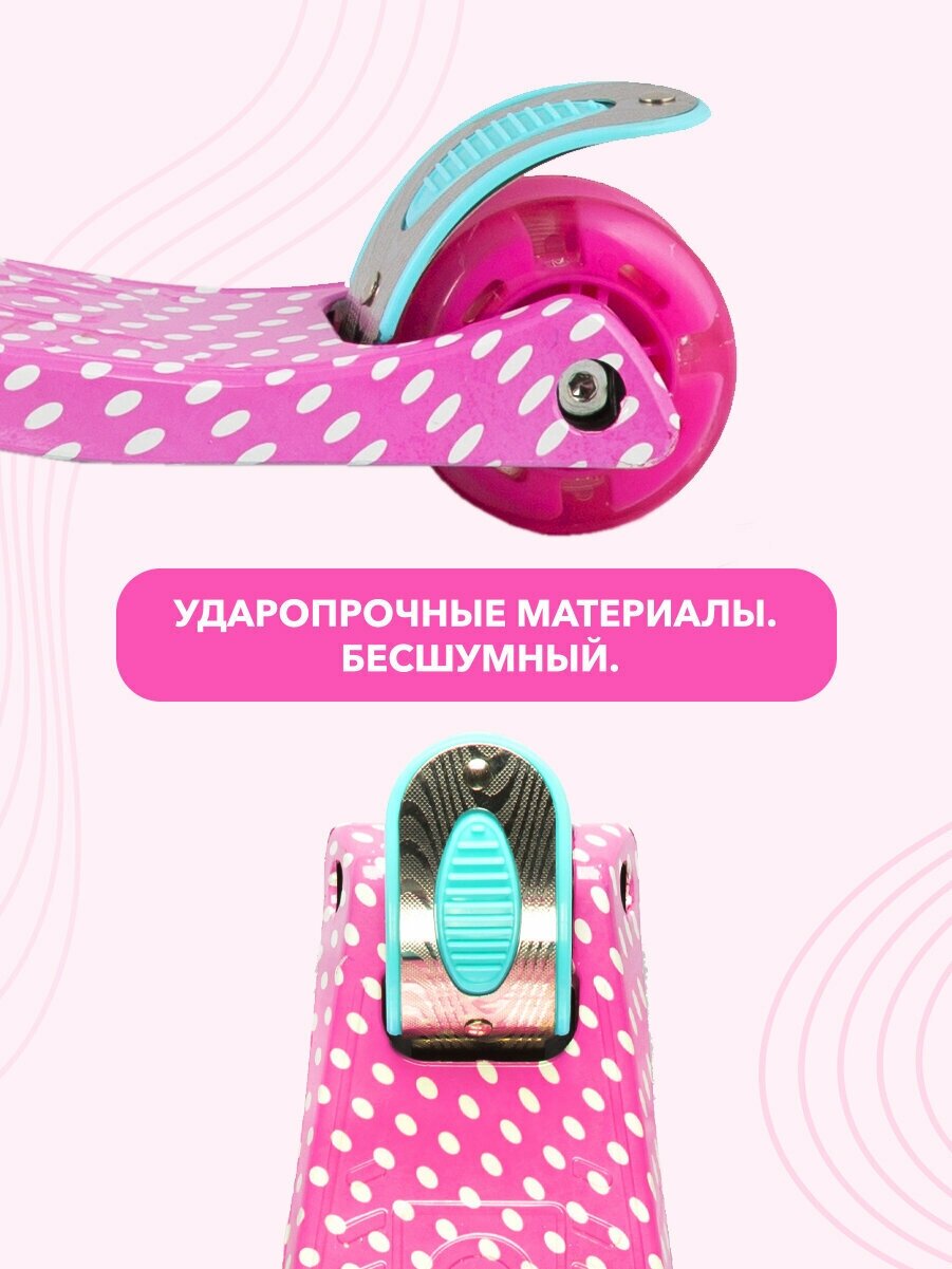 Самокат 3-х колесный "Junior" (2021), со Светящимися Колесами, Точки