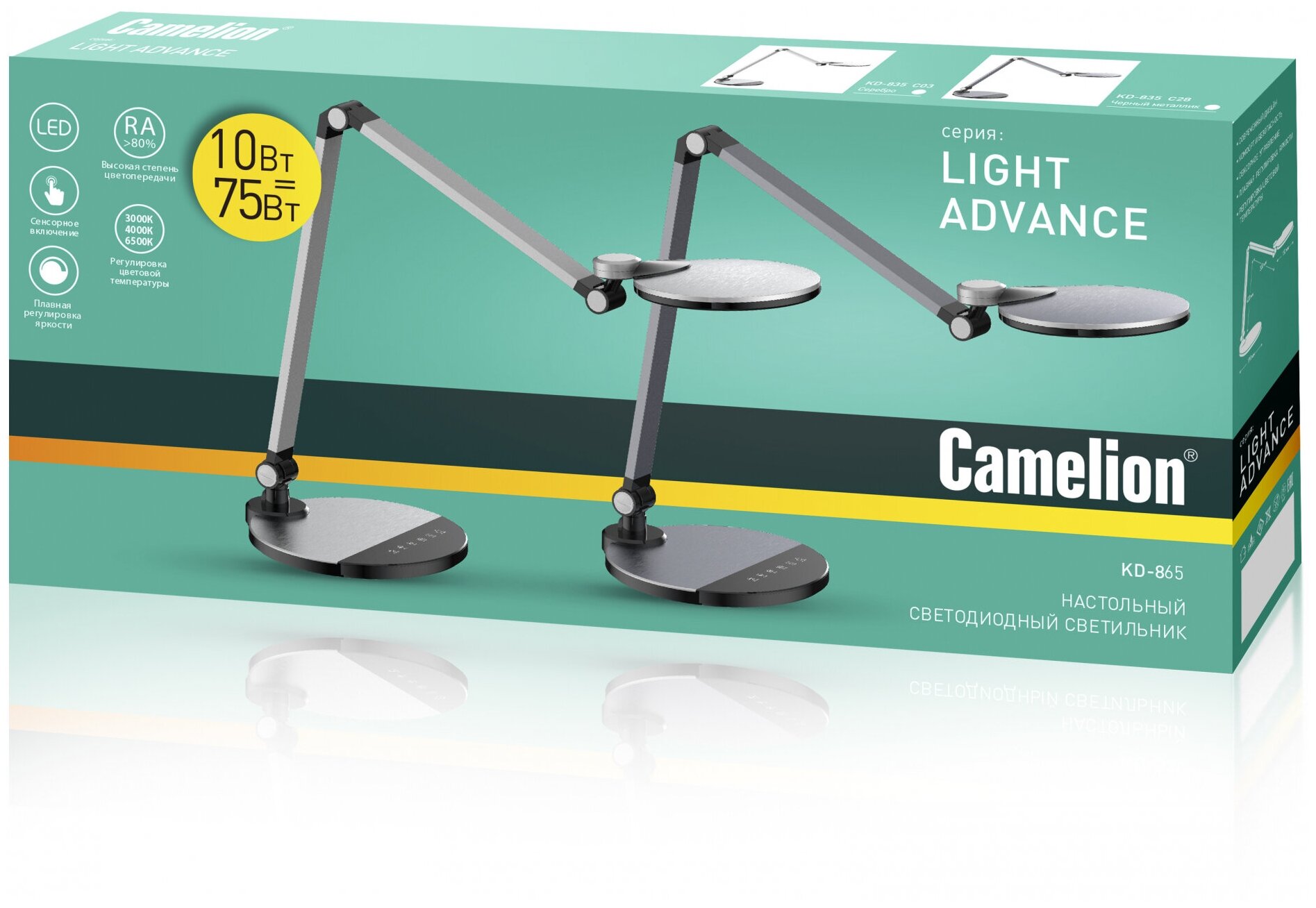 Camelion KD-865 C48 черн.металлик LED(Свет-к наст.10 Вт,230В,600 лм,сенс.рег.ярк и цвет.темп) 2 918 ₽ Подробнее