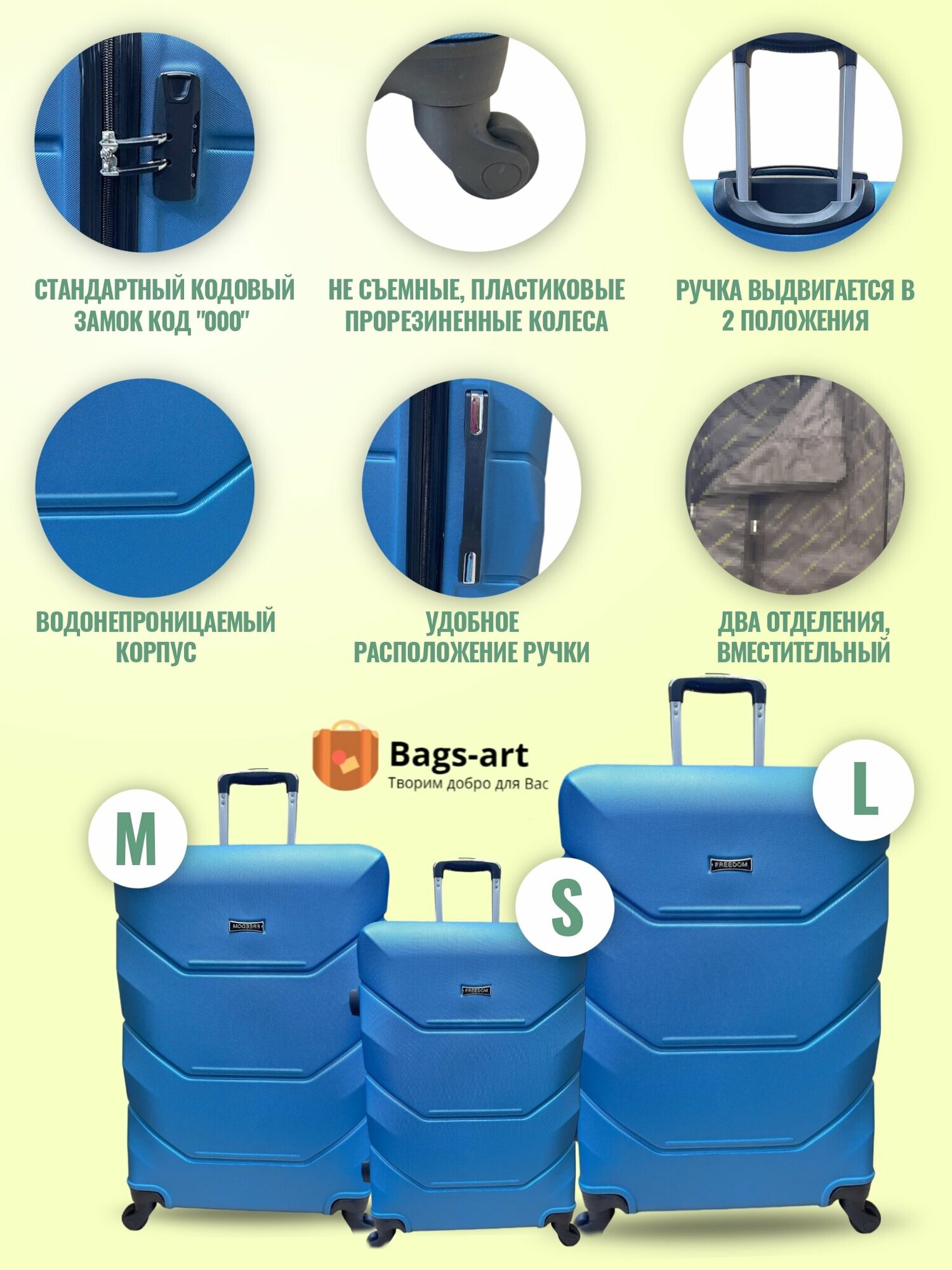 Чемодан на колесах для путешествий отпуска и отдыха маленького размера, Freedom S ручная кладь пластиковый ABS поликарбонат женский и мужской11