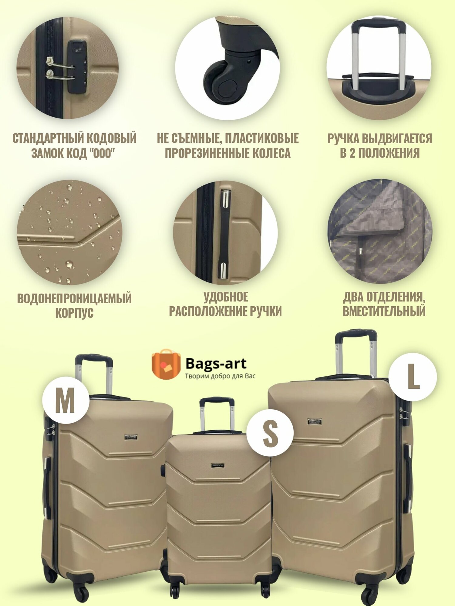 Чемодан на колесах для путешествий отпуска и отдыха большого размера, Freedom L пластиковый ABS поликарбонат женский и мужской вместительный12