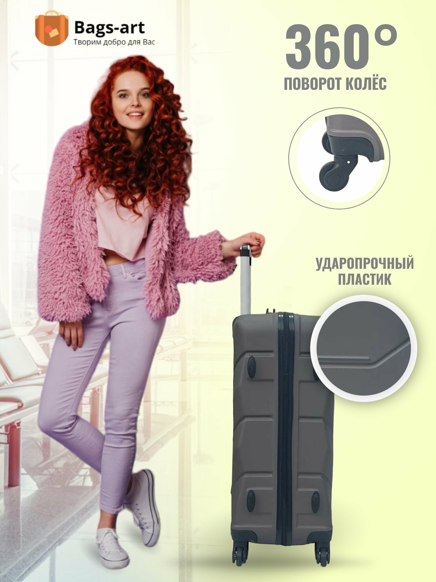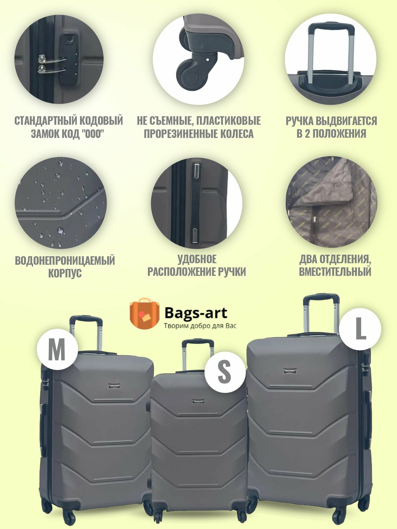 Чемодан на колесах для путешествий отпуска и отдыха большого размера, Freedom L пластиковый ABS поликарбонат женский и мужской вместительный11