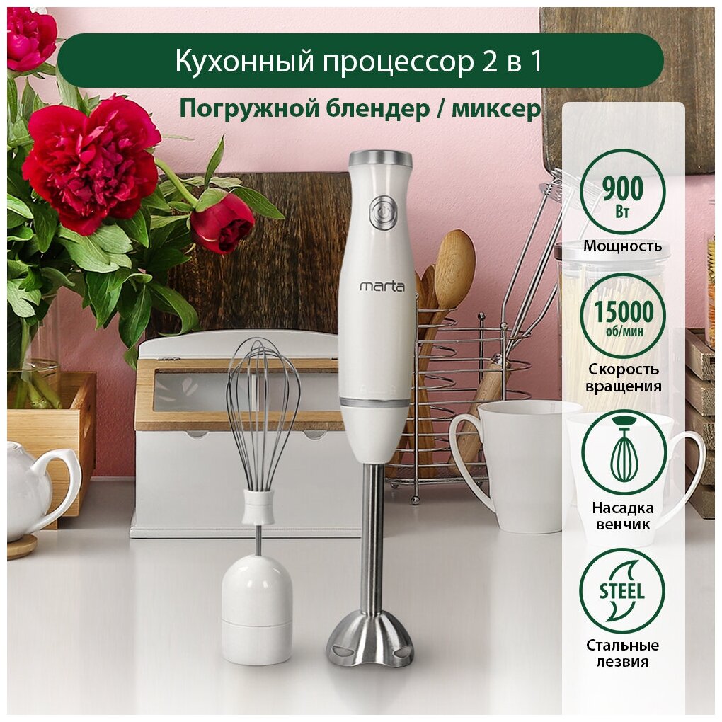 MARTA MT-1578 белый жемчуг блендер погружной