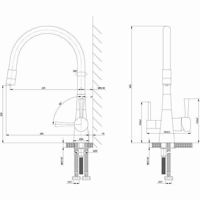 Смеситель для кухни с подключением к фильтру с питьевой водой, гибкий излив, гибкая подводка 50см (Lemark LM3075BN-Silver)
