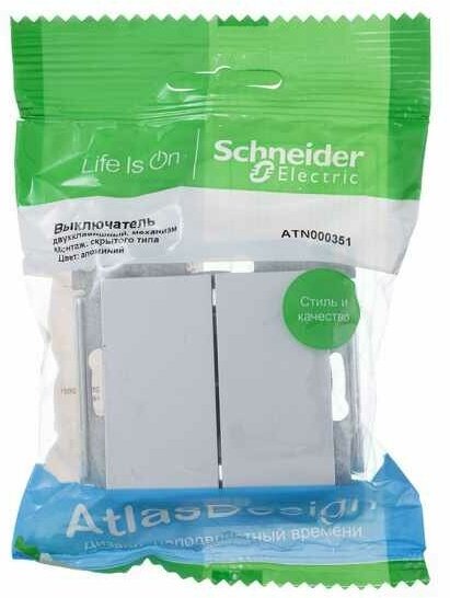 Выключатель 2-клавишный ATLASDESIGN, скрытый монтаж, жемчуг | код. ATN000451 | Schneider Electric ( 1шт. )