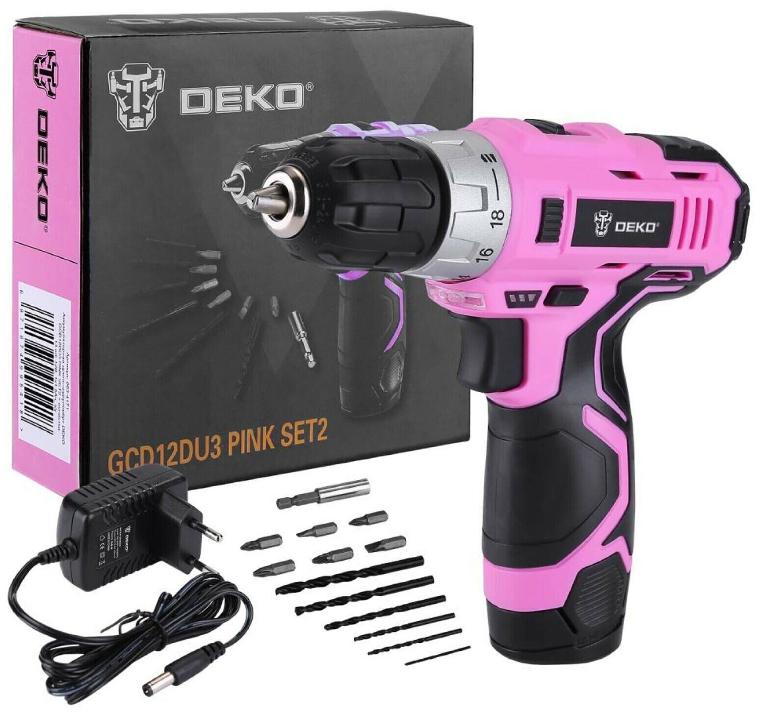 Аккумуляторная дрель-шуруповёрт DEKO GCD12DU3 PINK SET2 электроинструмент, подарок на день рождения мужчине, любимому, папе, дедушке, парню