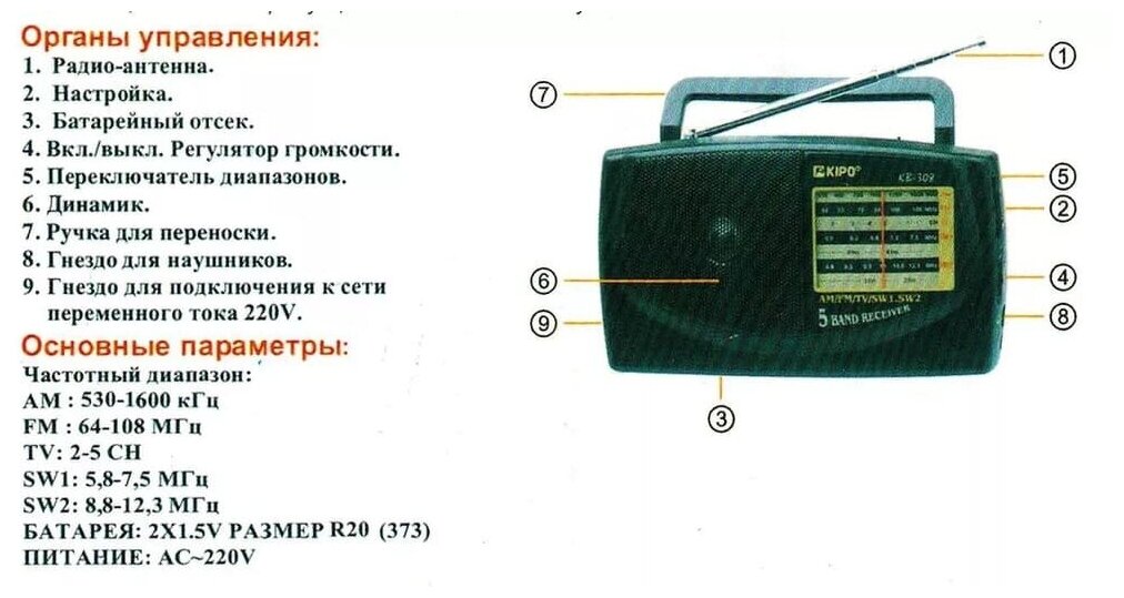 Радиоприемник Радиоприемник KIPO KB-308/309AC с механической регулировкой, от батареек и сети