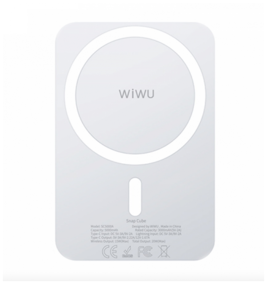Powerbank Повербанк (powerbank) WiWU Snap Cube Magnetic Wireless Charger Power Bank 5000mAh White