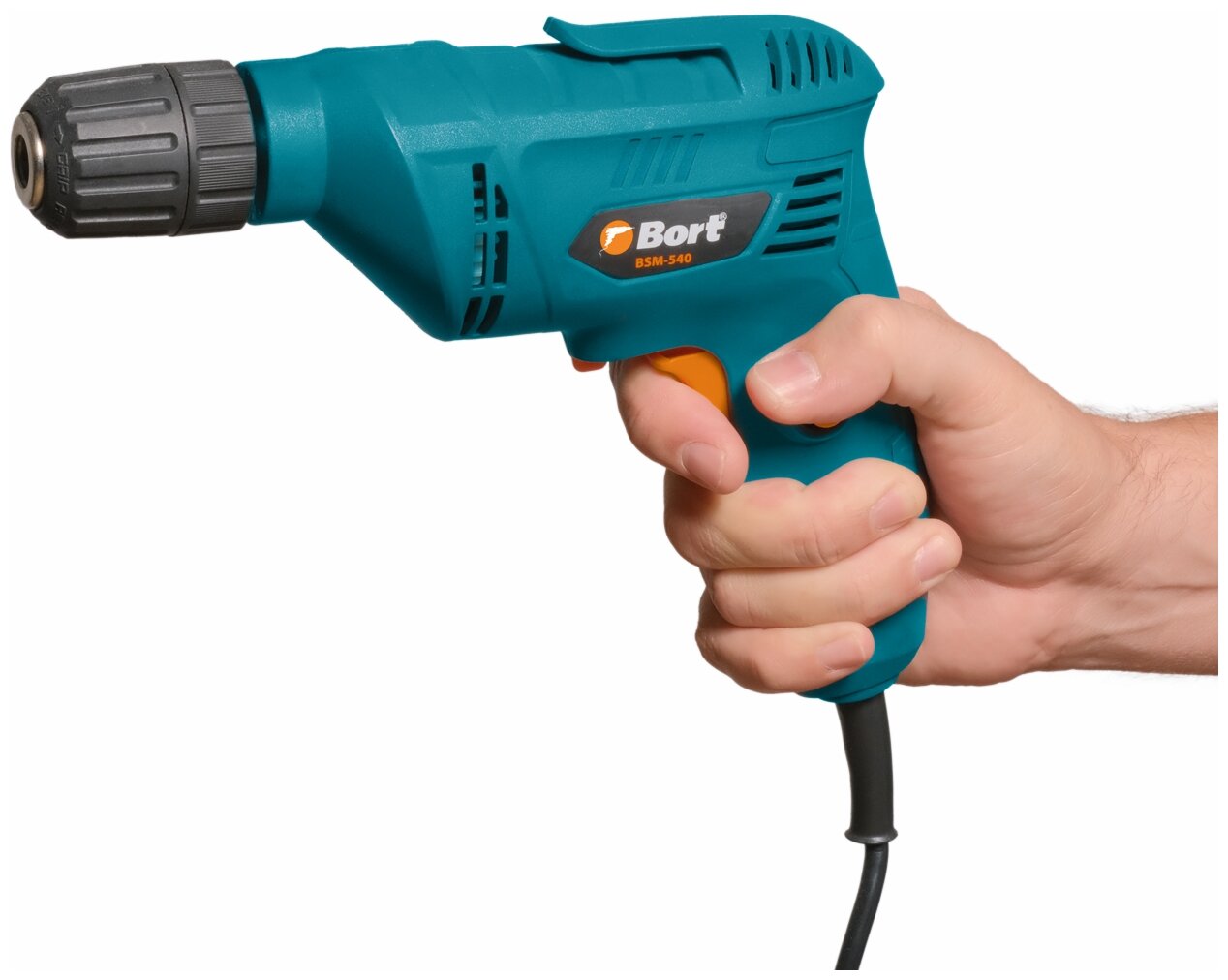 Лучшие цены. Дрель электрическая Bort BSM-540 Дрель Bort BSM-540 – простой и надежный помощник для строительных работ. Она отличается малым весом (всего 1,3 кг) и компактными размерами, так что вы можете работать в узких местах. Мощность в 450 Вт позволяет сверлить отверстия диаметром до 20 мм в дереве и до 10 мм в металле. Как у любой современной дрели, есть функция реверса и быстрозажимной патрон. Кроме того, данная модель имеет одну важную особенность – вы можете повесить ее на ремень. Магазины в вашем городе.