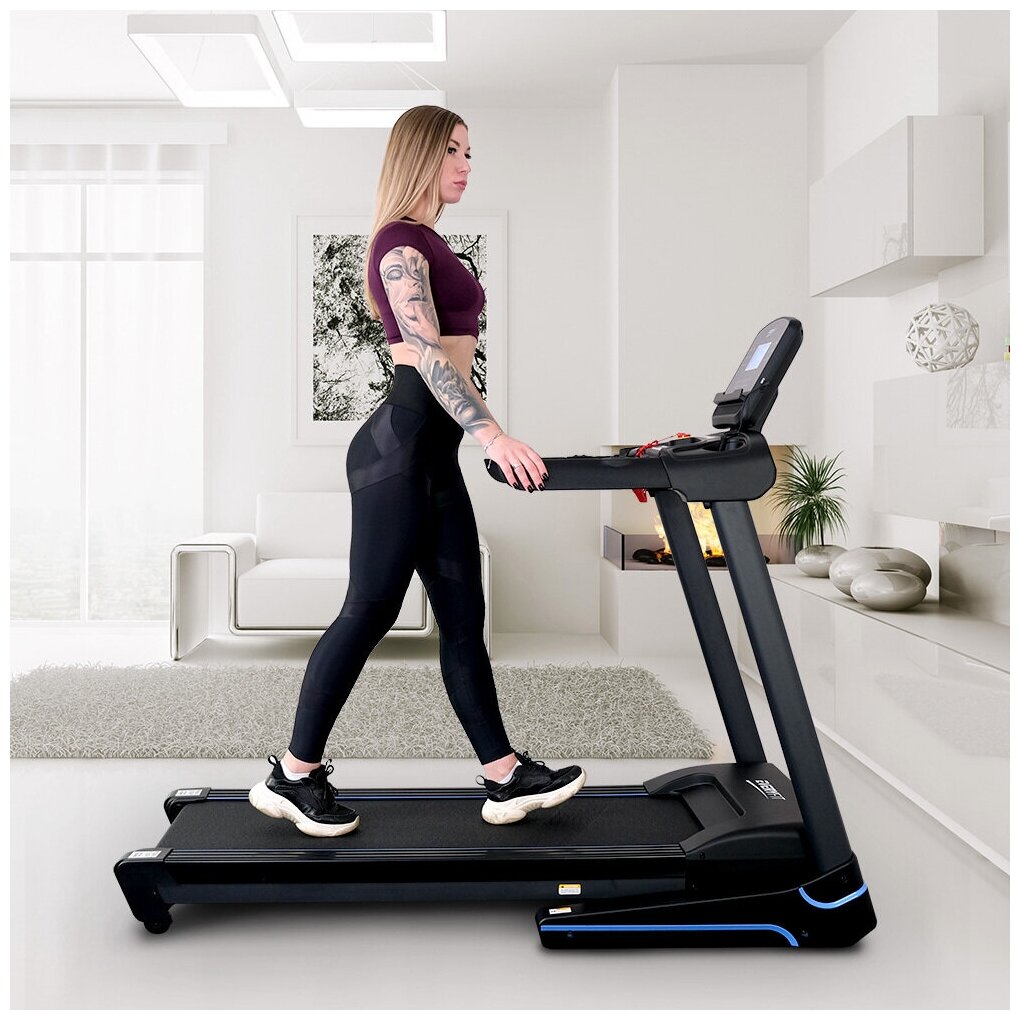 Лучшие цены. Everyfit 74203B — это легкая домашняя беговая дорожка. В ней собраны все необходимые показатели и функции для домашних тренировок: подъем бегового полотна, система амортизации, датчики ЧСС, функциональный дисплей с 9-ю тренировочными программами. Это оптимальный набор функций для данного ценового сегмента. После тренировки дорожку можно сложить и поставить в любое удобное место для хранения. Магазины в вашем городе.