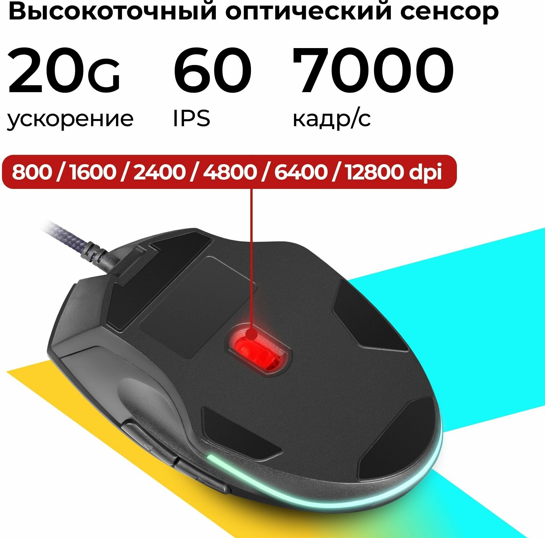 Игровая мышь Defender Wolverine GM-700L RGB, 7кнопок, 12800dpi