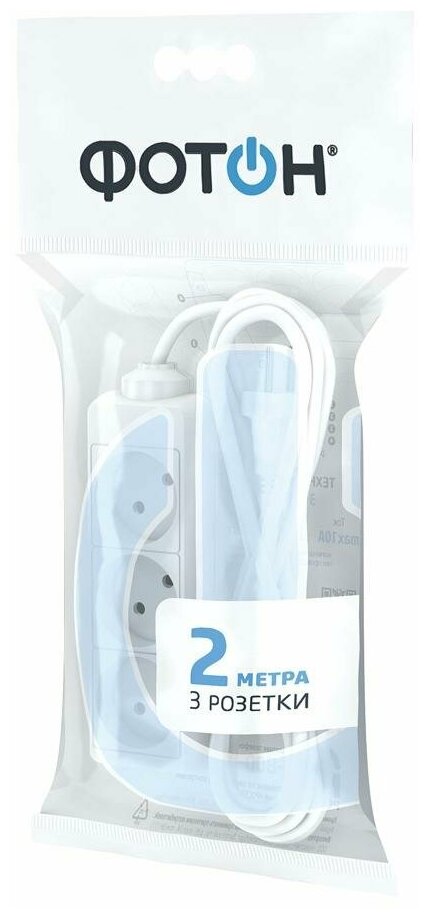 Сетевой фильтр / удлинитель Фотон сет. удл. ПВС 2х0.75 3 роз. 2 м 10А белый (корпус-PP,UV,ударопроч.,негорюч.) 10-23 BOPP 21110 (арт. 218145)