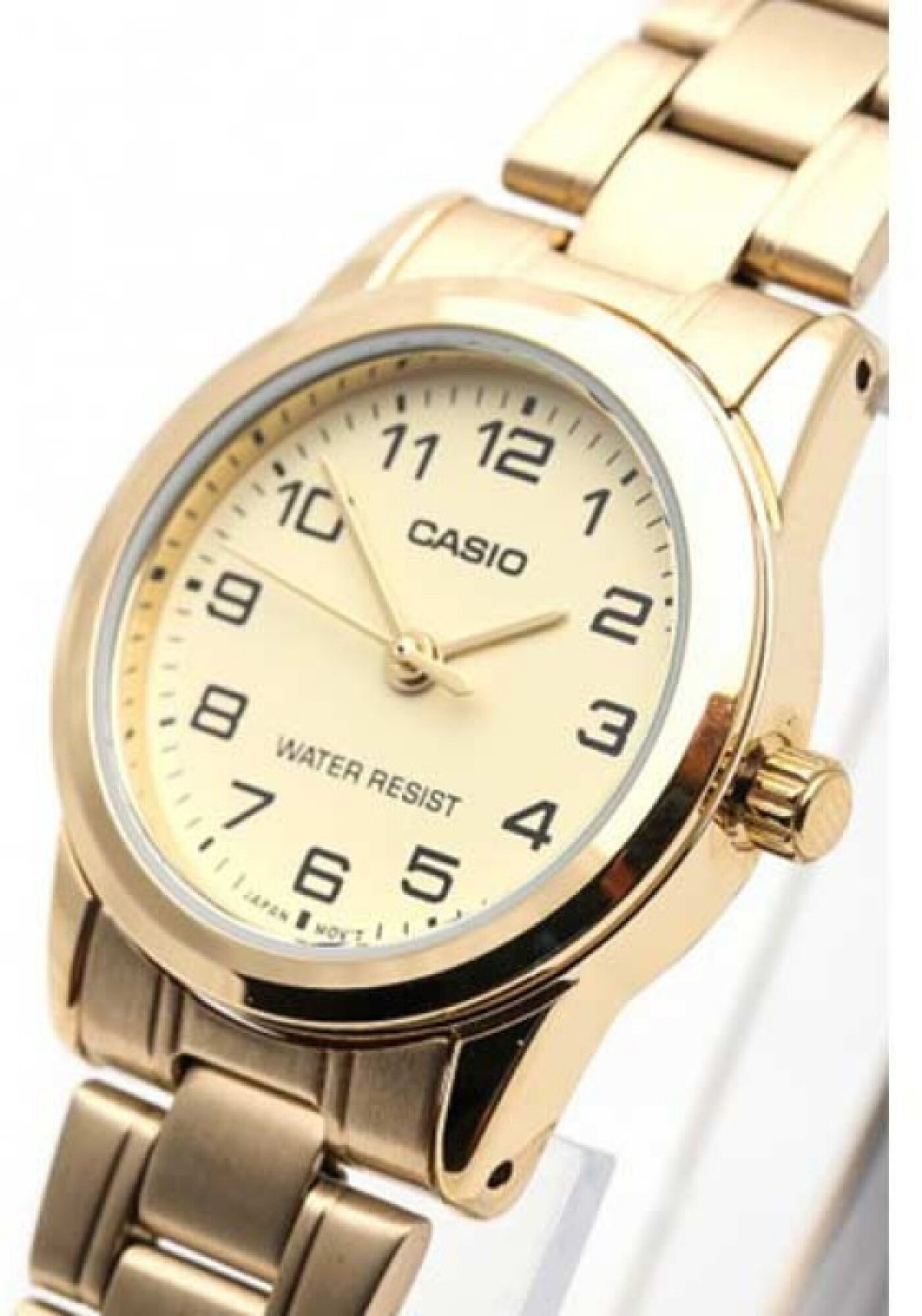 Лучшие цены. Женские японские наручные часы Casio Collection LTP-V001G-9B в классическом стиле с оригинальным дизайном циферблата. Кварцевый механизм с высокой точностью +/- 20 сек в месяц. Центральная секундная стрелка. Отображение времени в часовом формате 12 часов. Прочное минеральное стекло обеспечит защиту часов от повреждений. Водонепроницаемость 30WR (3 Бар) защитит Ваши часы от брызг и дождя, но плавать в них нельзя. Магазины в вашем городе.