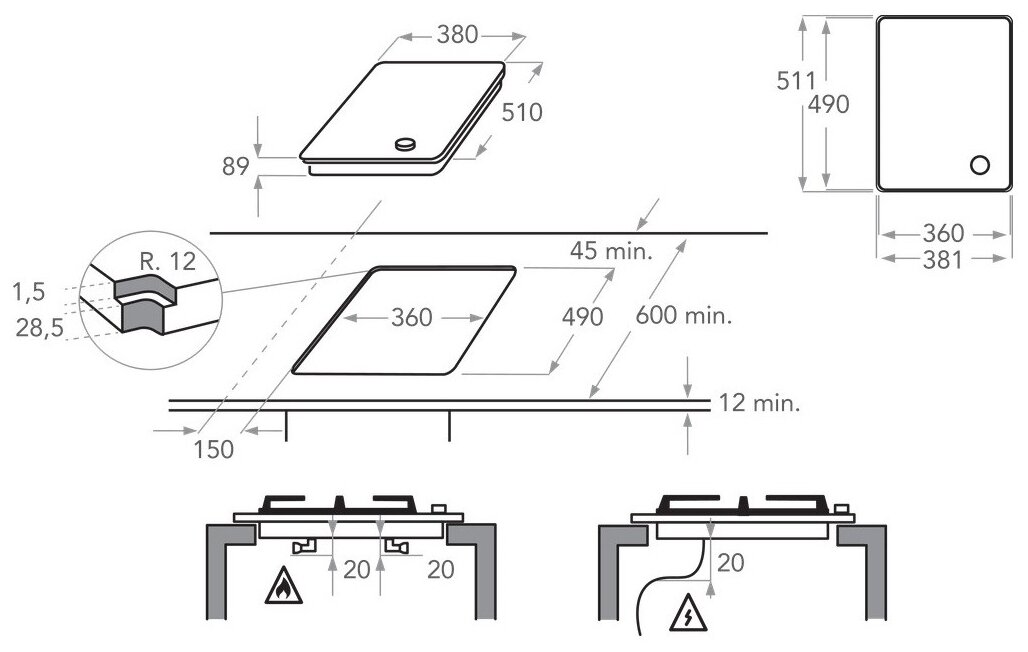 | Размеры для встраивания (ШхГ) | 904x508 мм |