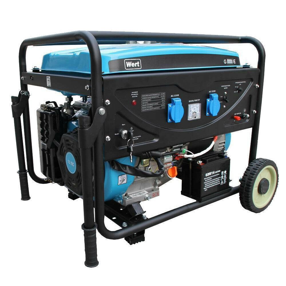 Лучшие цены. Генератор бензиновый Wert G 8000E с четырехтактным бензиновым двигателем предназначен для работы в качестве автономного источника электроэнергии переменного однофазного тока напряжением 220В, частотой 50Гц. Электростанция может эксплуатироваться в следующих условиях: рабочая температура окружающего воздуха – от -15°С до +40°С; влажность – до 80% при температуре +25°С; высота над уровнем моря до 1000 м. Магазины в вашем городе.