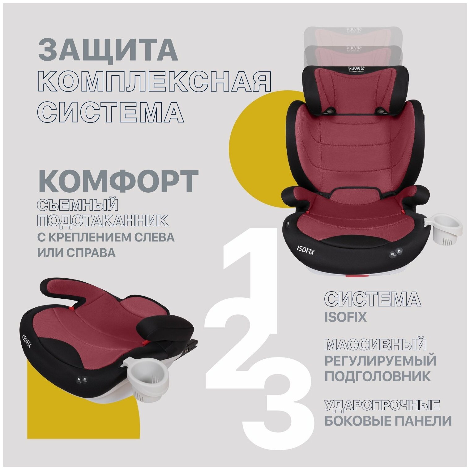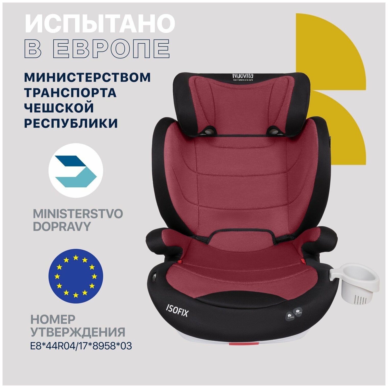 Автокресло детское с креплением Isofix Nuovita Maczione N23i-1, группа 2/3 от 3,5 до12 лет, весом от 15 до 36 кг/ трансформируется в бустер (Vinoso/Бордовый)