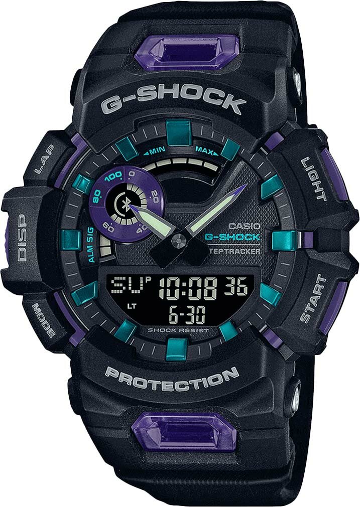 Лучшие цены. Часы мужские Casio g-shock GBA-900-1A6. Часы G-Shock станут крутым подарком для того, кто не представляет свою жизнь без спорта. G-SQUAD. Противоударный корпус защищает механизм от ударов и вибрации. Светодиодная автоматическая супер-подсветка. При движении руки дисплей освещается ярким светом. Послесвечение. Цвет подсветки: белый. Второй часовой пояс. 12-ти и 24-х часовой формат времени. Секундомер с целевым таймером и двумя точностями показаний: 1/100с (до 1ч) и 1с (после 1ч), время измерения 24ч. Магазины в вашем городе.