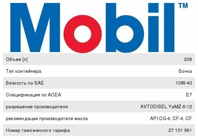 | Соответствие стандартам | ACEA A2/B2/E7; API SL/SJ/CF/CF-4/CG-4/CI-4/CH-4 |