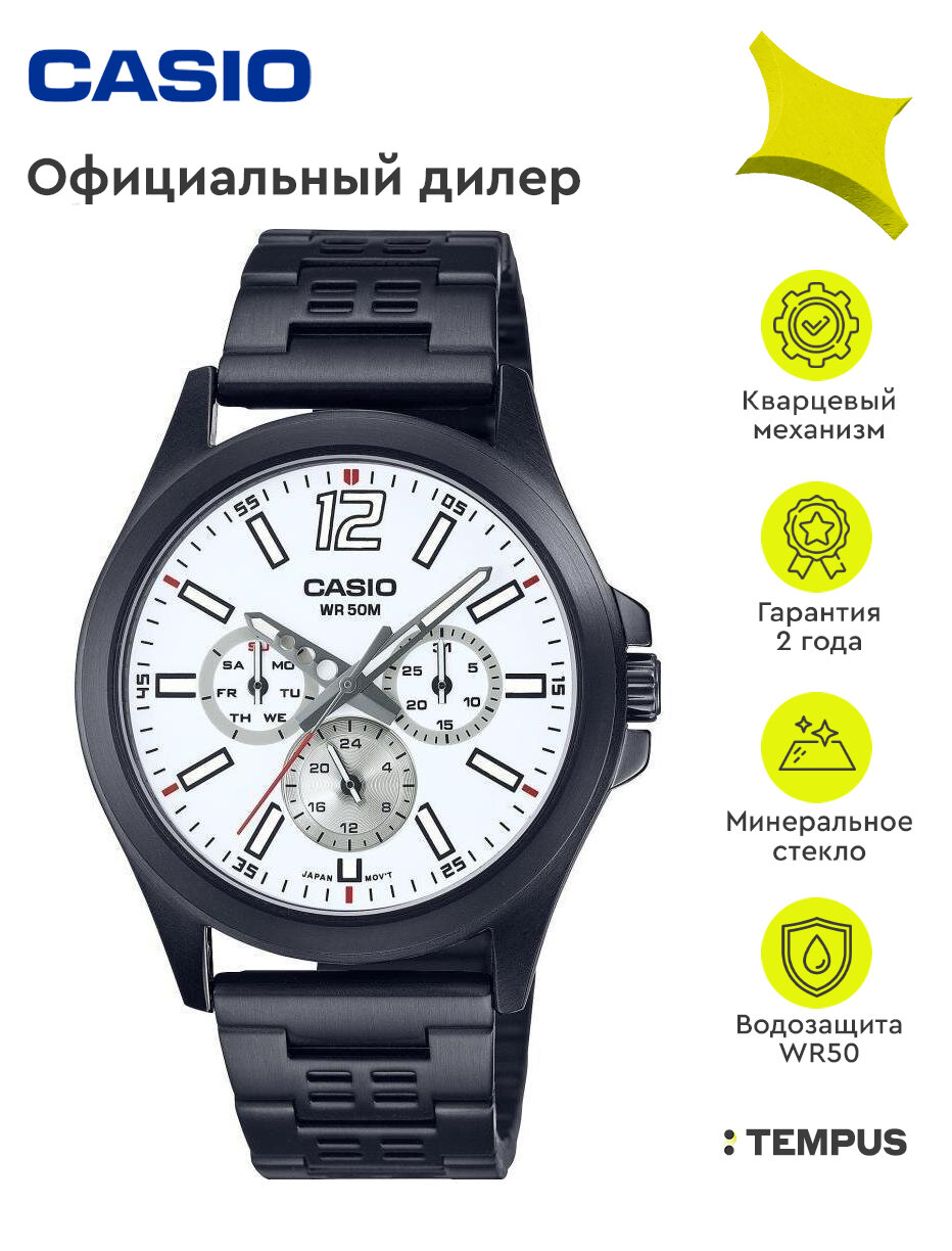 Мужские японские часы Casio MTP-E350D-1B с гарантией