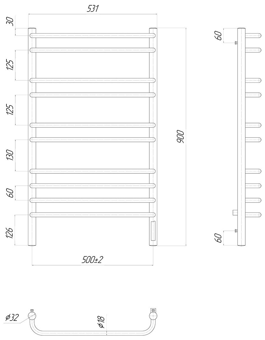Полотенцесушитель LEMARK электрический Luna LM41910Z П10 500x900, диммер справа, хром