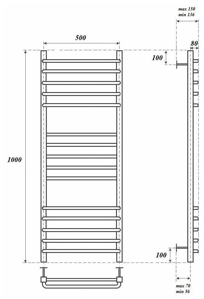 Лучшие цены. Полотенцесушитель электрический Point PN90150SE П15 500x1000 левый/правый, хром. Комплектация: Полотенцесушитель - 1 шт, кронштейны для крепления к стене - 4 шт, кран Маевского - 1 шт, заглушка декоративная - 1 шт, Электротэн – 1 шт, паспорт/гарантийный талон - 1 шт. Магазины в вашем городе.