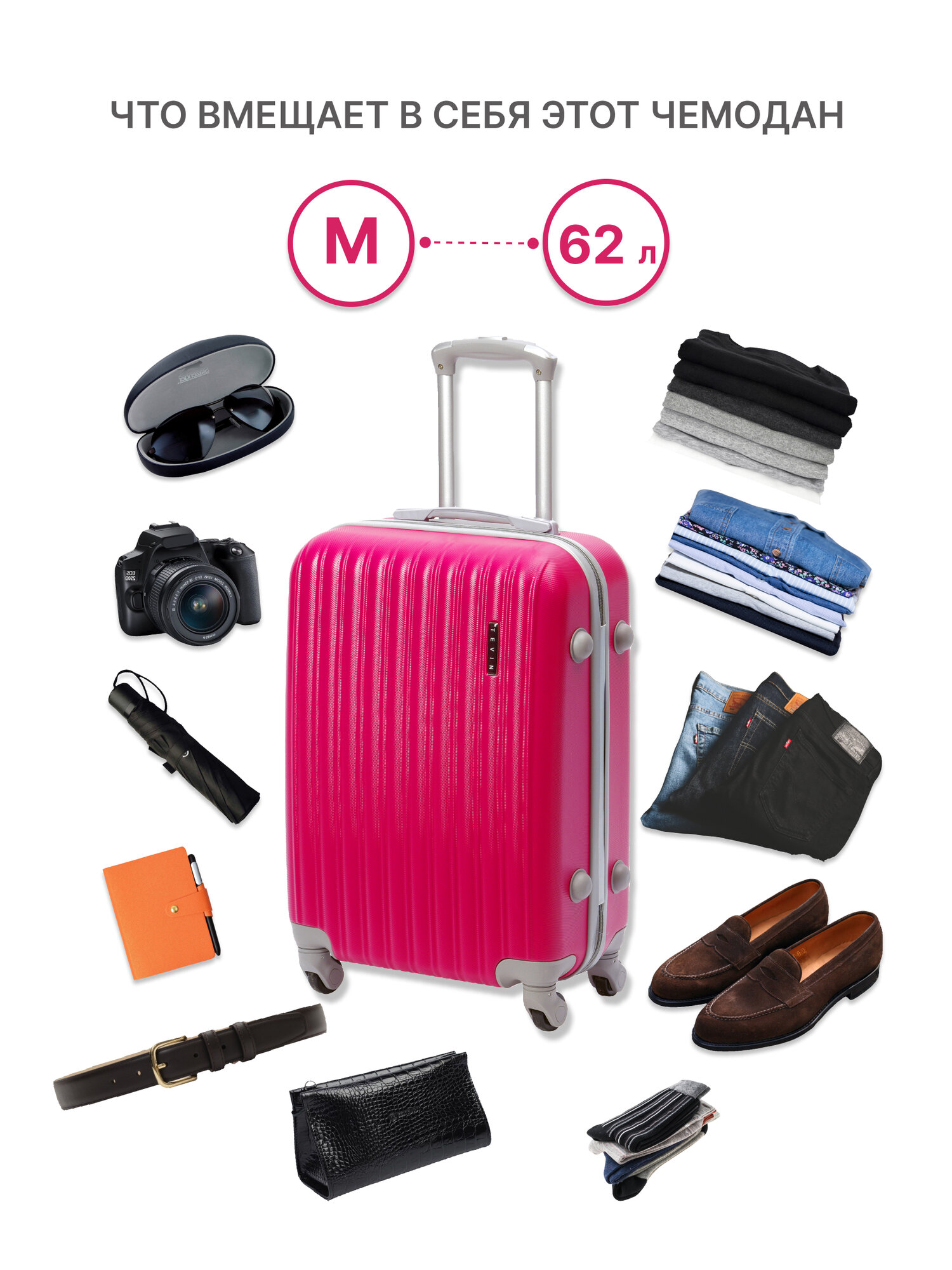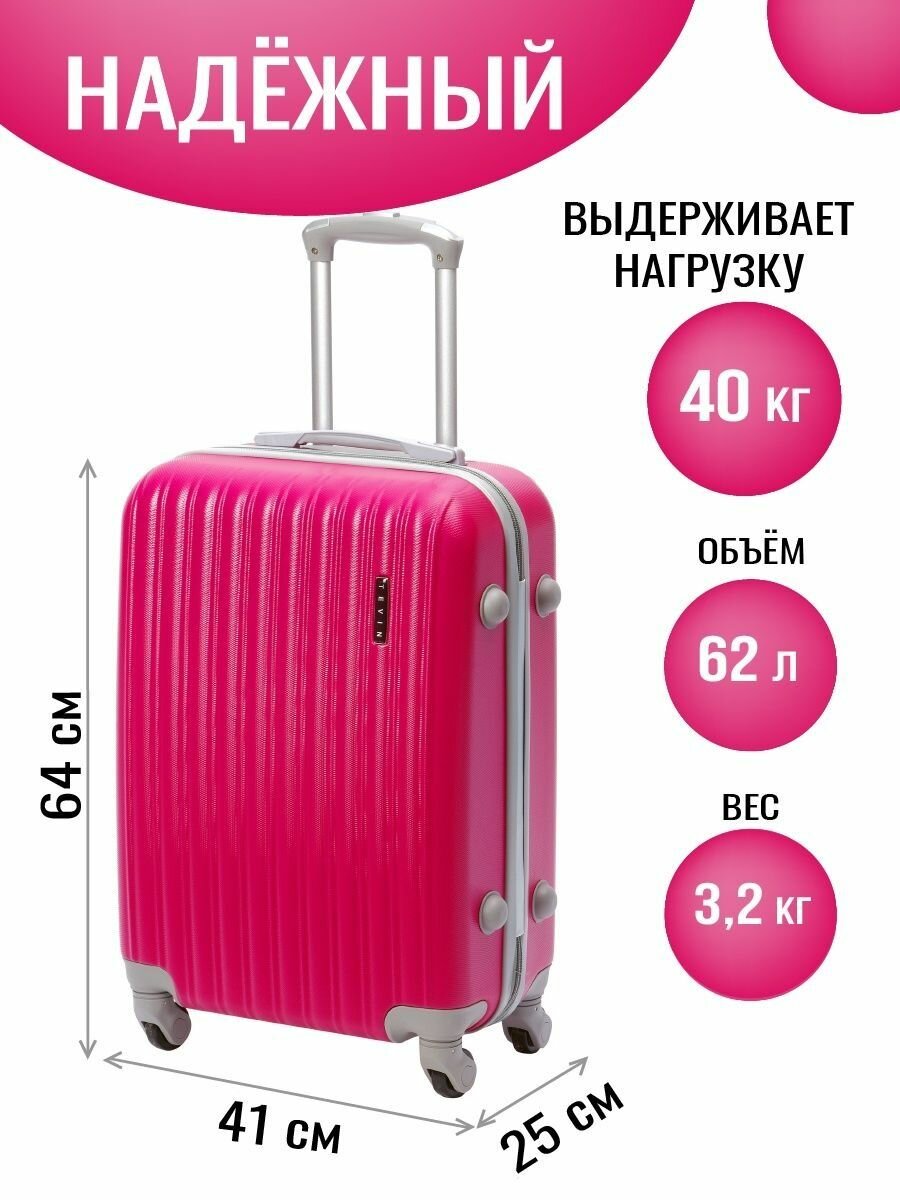 Чемоданы Чемодан на колесах дорожный средний багаж для путешествий женский m TEVIN размер М 64 см 62 л легкий 3.2 кг прочный abs (абс) пластик Розовый яркий