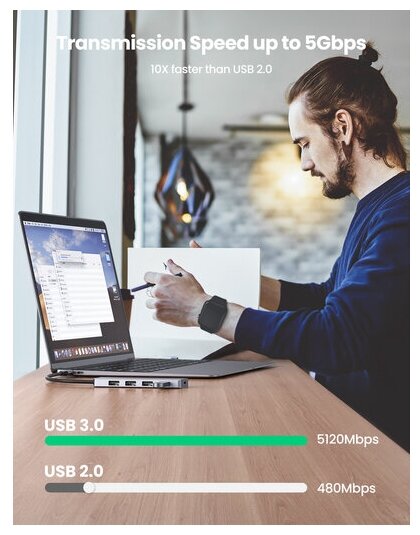 Ugreen <70336> USB3.0 4-port Hub питание Usb-c