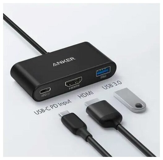 Картридеры и USB-хабы Хаб Anker A8339 PowerExpand 3-in-1 USB-C PD Hub, черный (A83396A1)