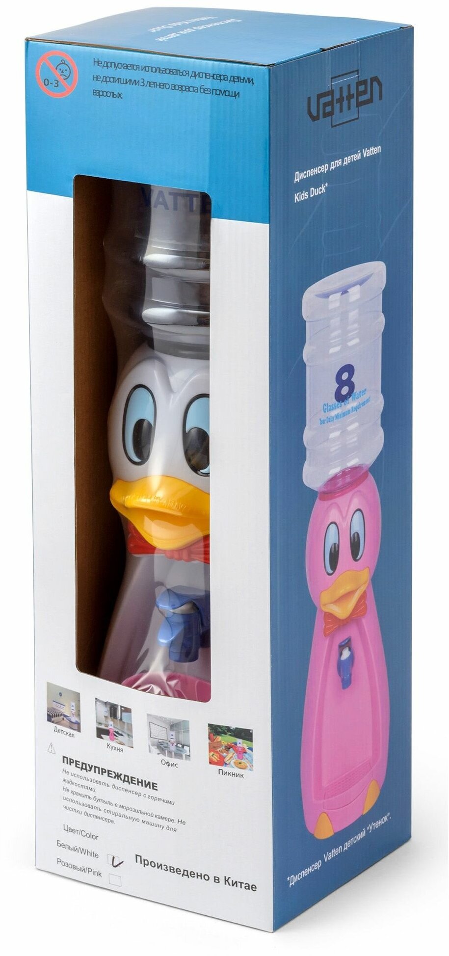Лучшие цены. Детский кулер Vatten для воды и любимых напитков вашего ребёнка идеально впишется в обстановку комнаты или кухни! Станет отличным украшением стола на празднике и удивит гостей своим необычным дизайном. Хороший подарок на Новый год или на день рождения. Ваш ребенок будет с удовольствием самостоятельно наливать воду из диспенсера в специальный стаканчик! • Цена от прямого производителя Vatten без лишних переплат. • Настольный детский кулер kids Duck представлен в белом цвете. Магазины в вашем городе.