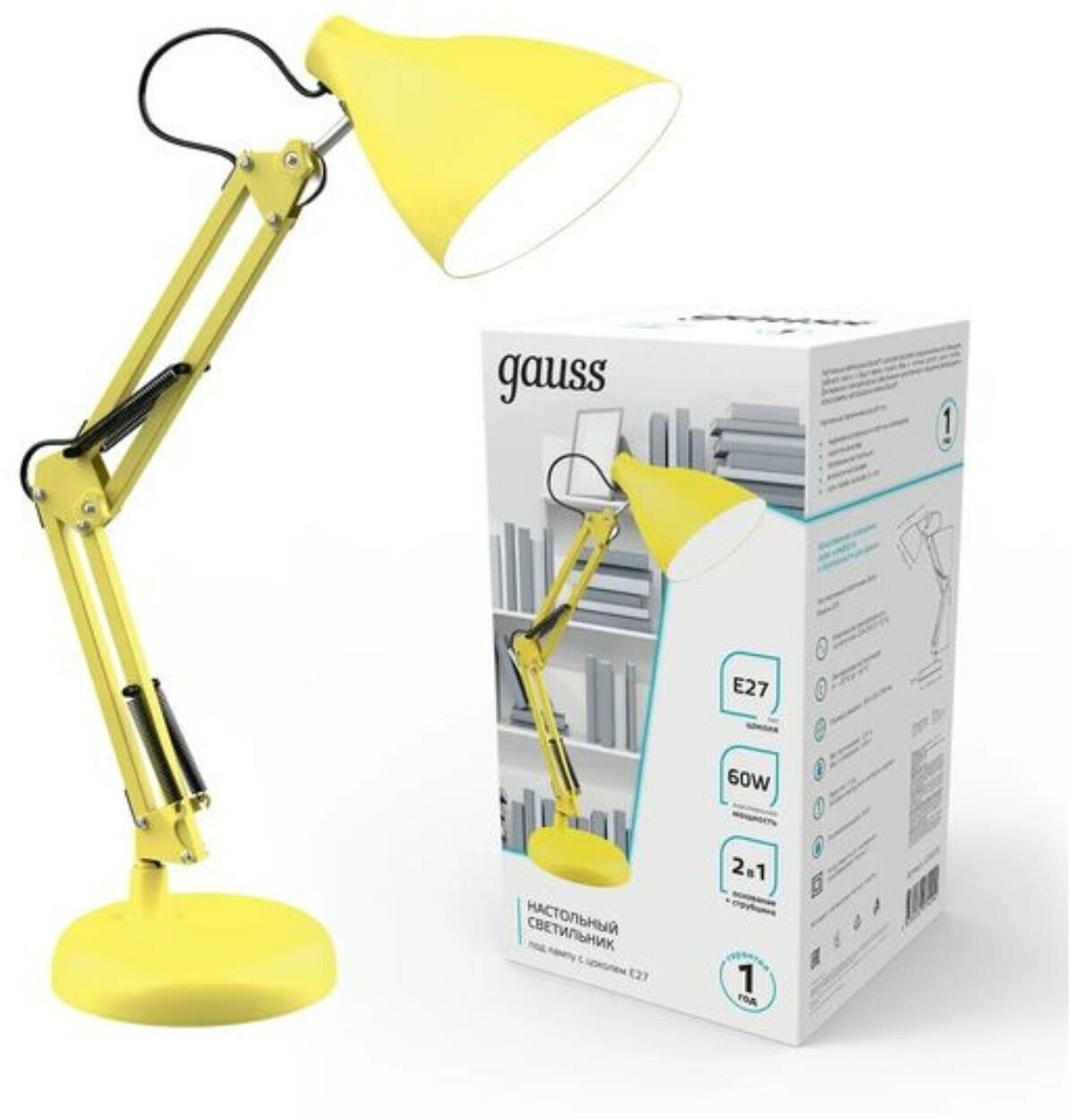 Настольная лампа Gauss GTL003 60W 220-240V E27 желтый струбцина и основание 1/12