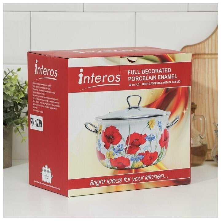 Лучшие цены. Эмалированная кастрюля Interos из качественной стали, покрытой двухслойной стеклокерамической эмалью, отлично подходит для приготовления и хранения различных блюд. Особенности: * крышка ускоряет приготовление пищи, * внутренняя поверхность безопасна для продуктов питания, * удобные ручки, * оригинальный дизайн. Посуда подходит для газовых, электрических, стеклокерамических, галогенных и индукционных плит. Рекомендуется избегать использования высокоабразивных моющих средств и железных губок. Магазины в вашем городе.